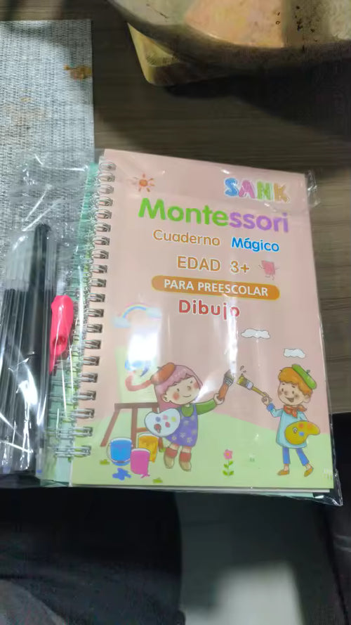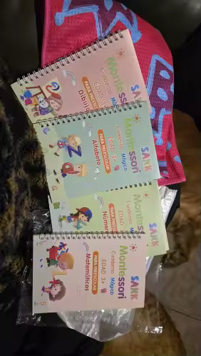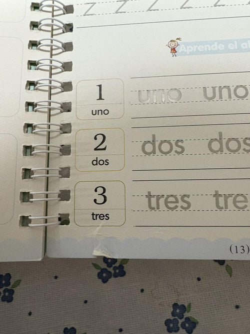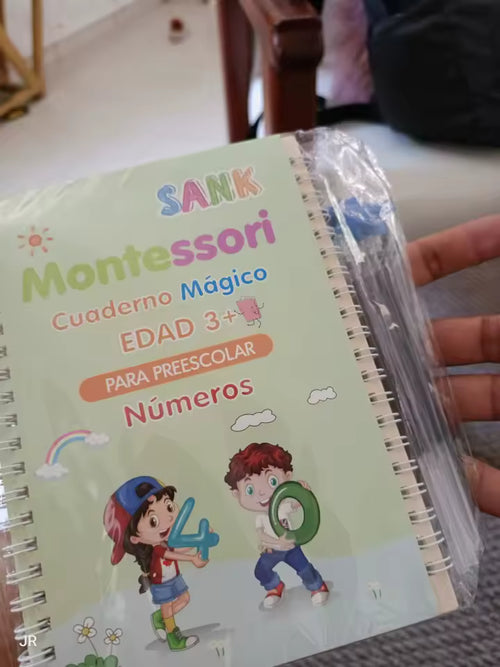 Al principio no quería escribir, pero con estos libros ahora practica solo. ¡Su letra cambió muchísimo!