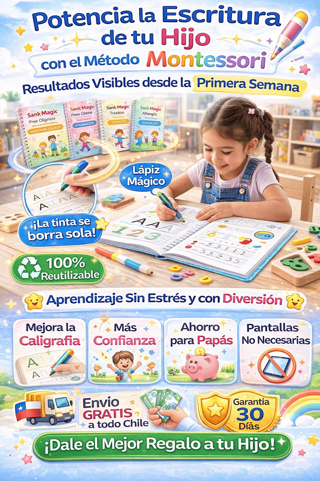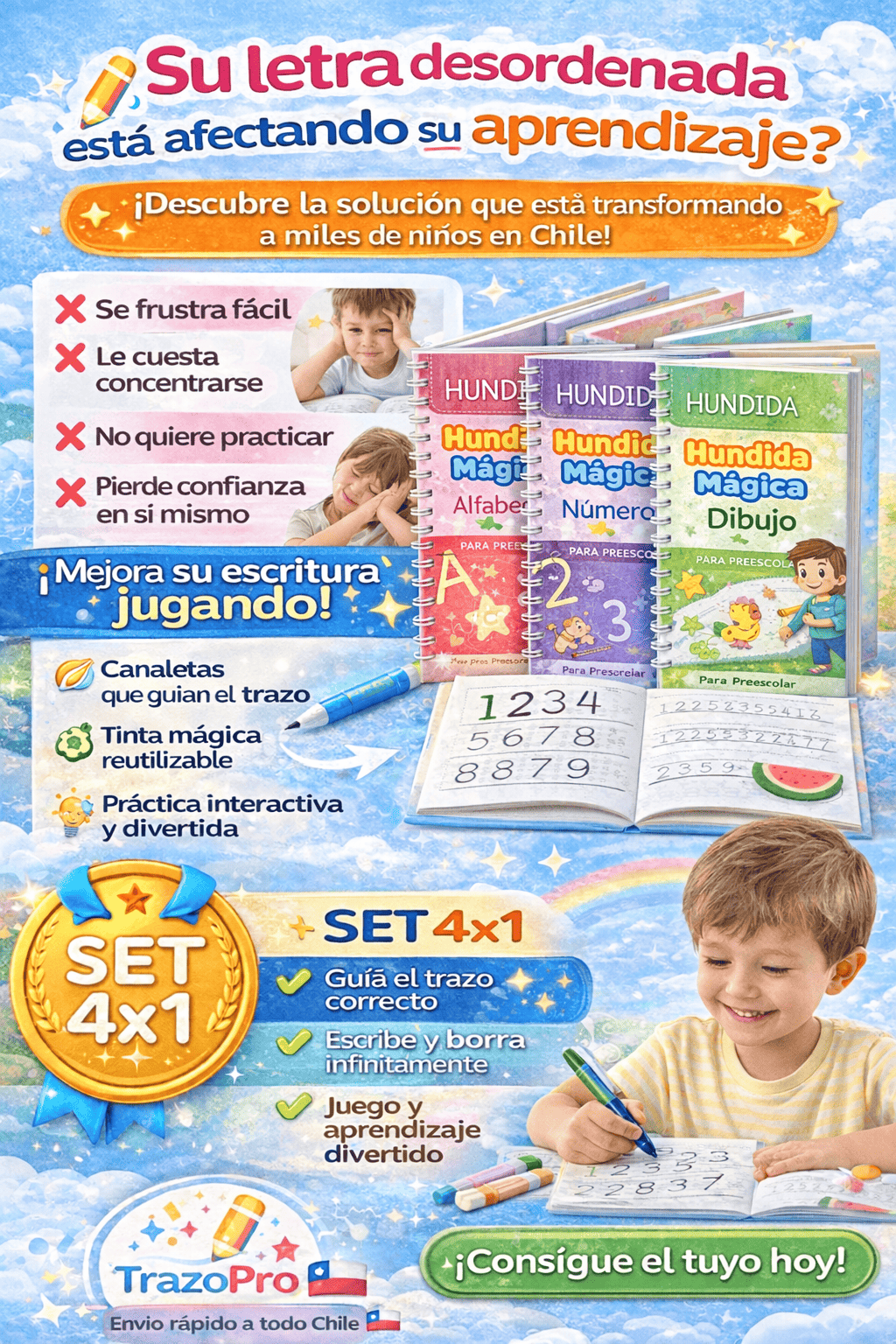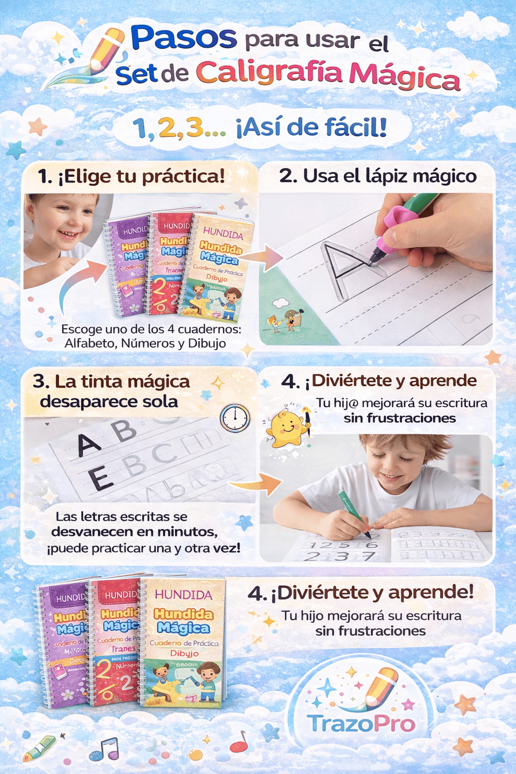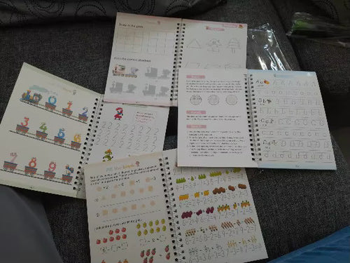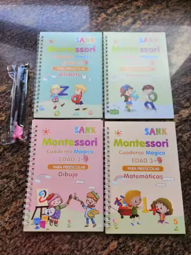 TrazoPro Kids™ – Set de 4 Cuadernos de Caligrafía Reutilizables ✏️📚
